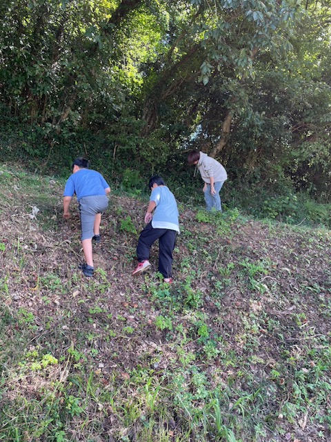 お昼を食べて、午後は畑へGo!。みちゆきにはどんぐりがコロコロ。