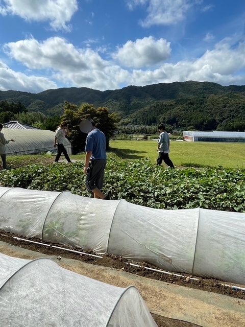 秋の畑と秋の空。もう少しでサツマイモが収穫できそうです。焼き芋大会やりたいな。えーぽいんとの魅力も「食」かもね(笑)