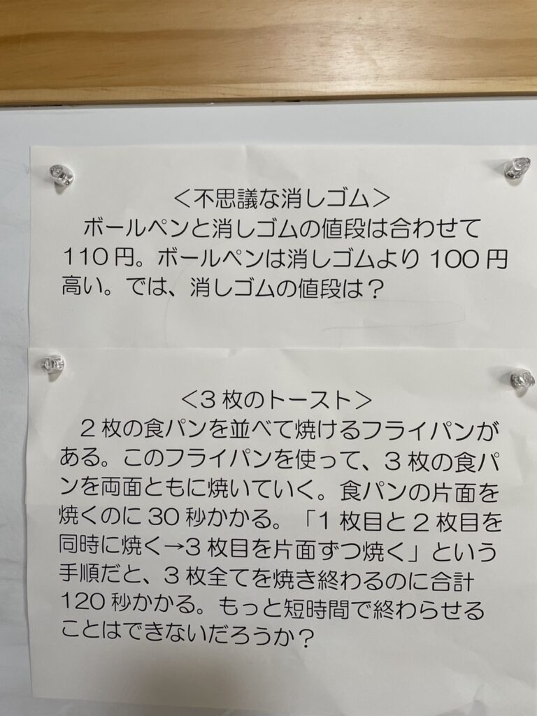 こちらは「ひっかけクイズ」に「段取りクイズ」。ひらめき派のAくん、実証派のTちゃん、回答方法にも個性がキラリ。(気になる正解、みなさんには次回お届けします。)