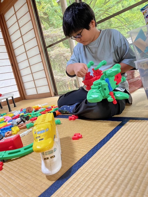 一日をかけて大作ができました。作品のアイデアもひらめきなのかな?Aくん、素敵だね!!