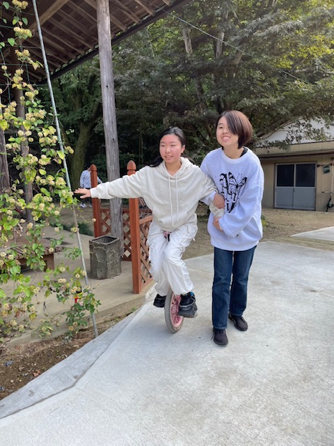 そして(まだまだあります!)外に出て、バトミントン、ダンス、大ブランコに一輪車。3月に庭をぐるりと舗装したので、一輪車もいい感じで走ります。Hちゃん、まっすぐ目線をあげて、Tちゃんのナイスアシストで、バランスがうまくとれるようになりました。