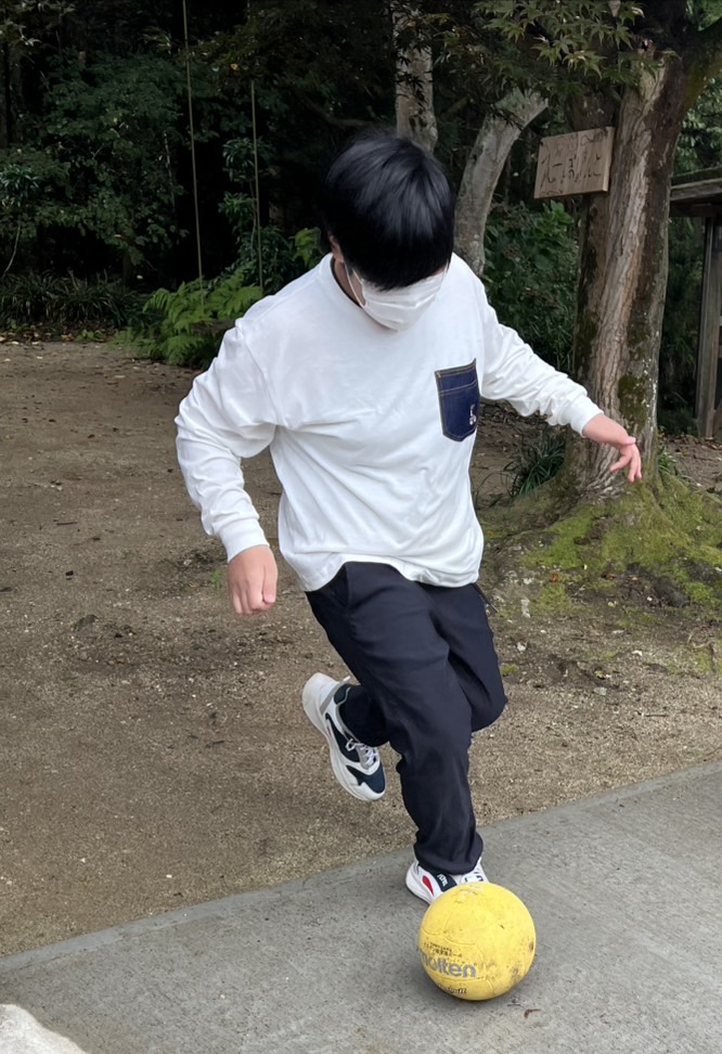 まずは外に出て、自転車乗りやボールを使ってドリブルかけっこ。思いっ切り駆け回りました。
