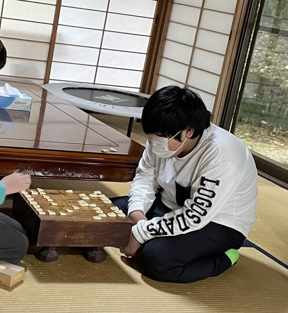 体を動かしたあとは、落ち着いて将棋で対戦。なかなか本格的な勝負が繰り広げられました。えーぽいんと定番の人生ゲームもやったよ。ちょっとおとなしいKAくんですが、えーぽいんとの先輩としてしっかり案内をしてくれました。ありがとう、KAくん。