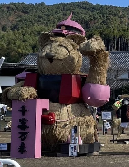 そう!今日出会った、巨大かかしの招き猫です。ぐるっとまわって、幸せのポーズにほっこりした一日でした。