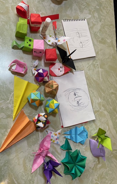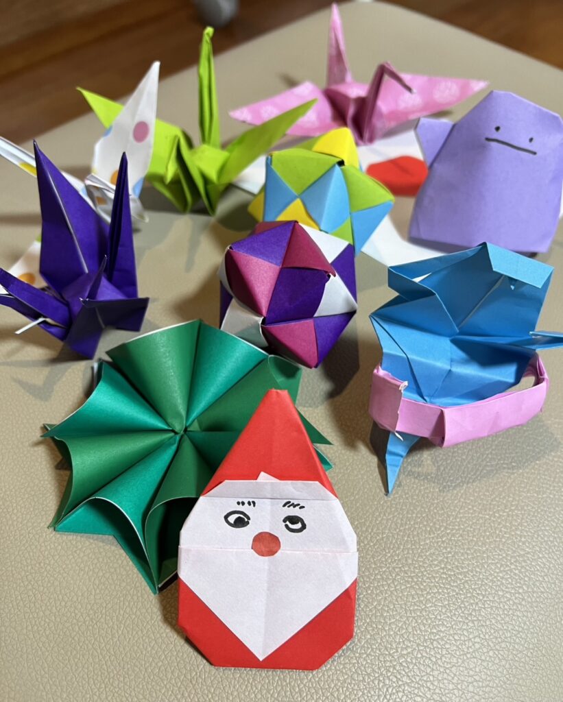 えーぽいんたーの作品は、昔ながらのつるや手裏剣から、みんな大好きサンタクロース、おすもうさん、おばけにゲームのキャラ?!までいろいろです。7世紀から1400年の時を経ても、進化を続ける遊びだと思うと、折り紙最強!かも。