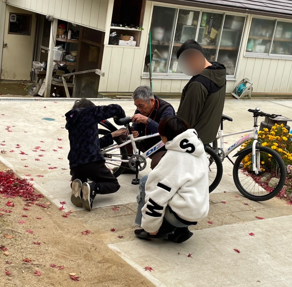 昨日とはうってかわって今にも雨になりそうな空。寒い朝になりました。今日は小学生ボーイズ2人と中学生ガールズ3人の5人が集合。朝一番は、気になっていた自転車の不具合をOさんに教わりながら直しました。Oさん、寒いところありがとうございました。自転車の調子はよくなりましたが、さすがに寒くてサーキットは今日は休業だね。