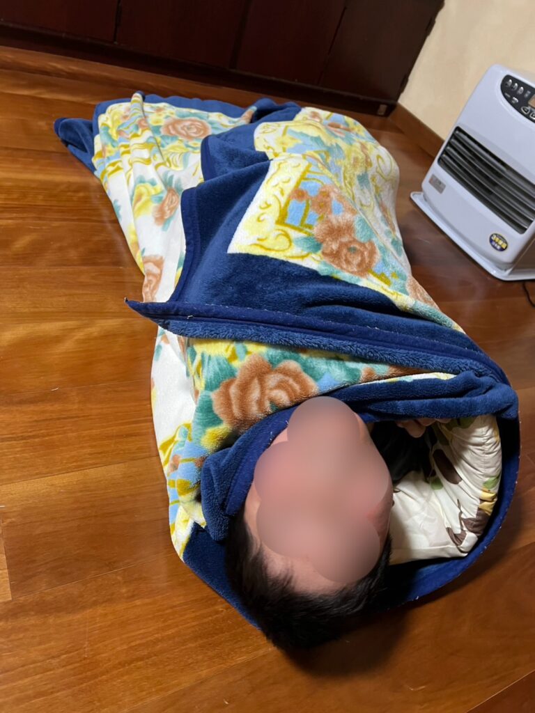 それにしてもHくん、いくら寒くてもそれはないでしょう(笑)。いつの間にか、ファンヒーターの前でミノムシに変身。みんな思わずにっこりほっこりでした。