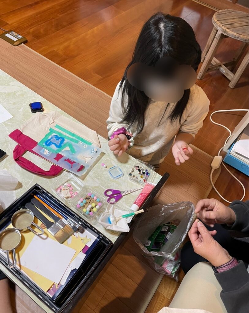 IAくんはiPadで大好きなポケモンの調べもの、Sちゃんはえーぽいんとグッズ制作。こんな風にテーブルを囲んで、思い思いに過ごしながらおしゃべりしたのは「ポケモン」と「きょうだい」。IAくんの「きょうだいとはこんなもんですよ。」のちょっと大人な結論に、にっこり頷くSちゃんでした。(こんなものとはどんなもの??笑)