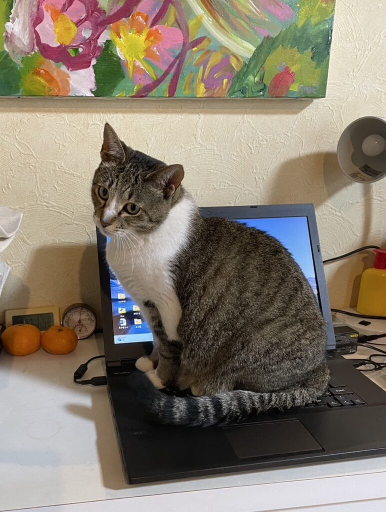 IAくん、LOVEのこもったやりたい放題(笑)。調子にのったにゃんちゅうは、なんとパソコンに挑戦です!こらこら!!にゃんちゅうも大好きなIAくんをひとり占めできてご満悦のご様子。相思相愛♡の二人をみながら、スタッフもほっこりしました。