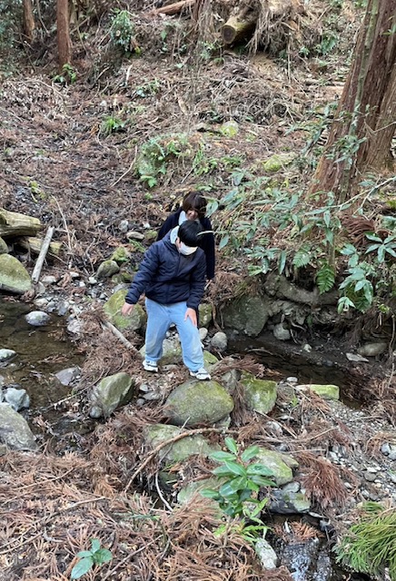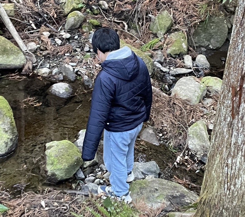 午後はお天気に誘われて、久々にえーぽいんとの下を流れている小川に降りてみました。斜面をゆっくり下ってたどりついた小川は、水量が少ないからなのか、冬だからなのか、生き物を見つけることはできませんでした。