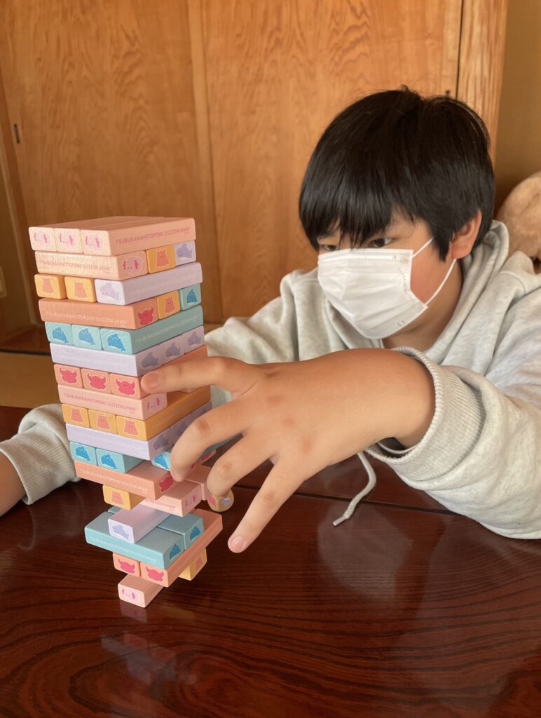 ジェンガです。今日も『シュッと抜いてサッと置く!!』という極意を披露してくれました。(2025年9月19日のえー日記をぜひご覧ください。)