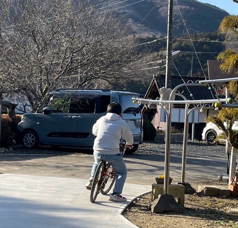 それから、インドア派とご紹介したKAくんですが、今、果敢に挑戦しているのが自転車です。今日は春友サーキットを独占できたので、思う存分練習できました。
