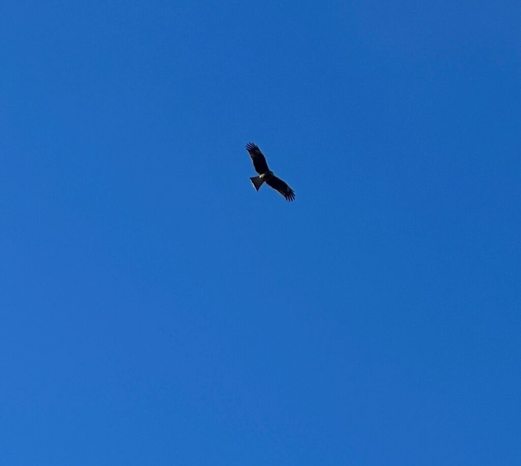 ところで、朝の空をゆうゆうと飛ぶ鳥を発見したのは、体験ボーイのKくん。スタッフがナイスショットです。凛と青い冬の空。冬は空気が乾いていてチリや水蒸気が少ないため、光がにごらず、空が澄んだ濃い青に見えるそうです。「空があるまち」の美しい空がここにもありました。