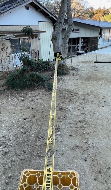 はい!スラックラインです。幅5センチほどの平べったいベルト状のロープを歩いたり、技をしたりして遊びます。15メートルほどのコースができました。スタート台はビールケース!