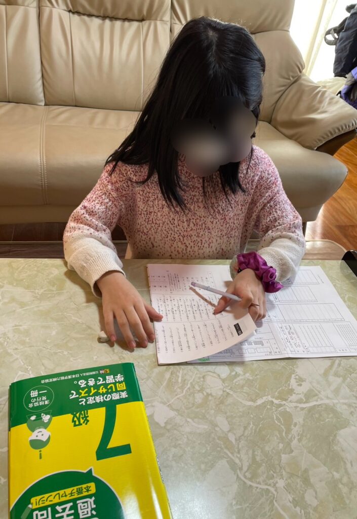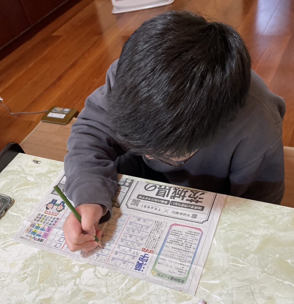 その後、IAくんは恒例の新聞クロスワード。今日は漢字パズルに挑戦しました。今どきは、紙の辞書よりインターネットなのよね。サクサク調べながらパズルを埋めました。Sちゃんは漢字検定の勉強です。4年生のSちゃん、自分の学年レベルの7級にチャレンジしています。あれ?!偶然にも漢字の勉強デーになりました。