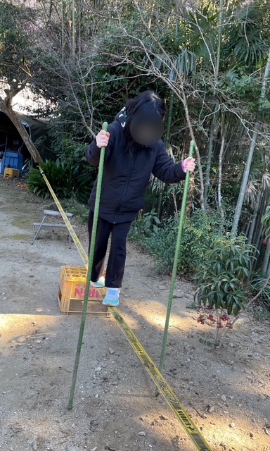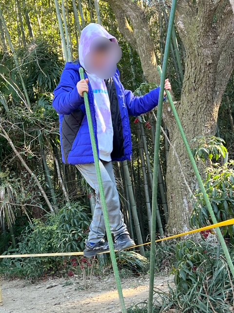 二人とも数回歩いたらコツをつかめたみたい。だいぶかっこよく歩けるようになりました。手放しで歩ける日も近いかな?!スラックライン、見た目ゆるそうですが、全身をバチバチに使います。体幹とバランスと反射神経、この3つ、大人も鍛えるといいね!こんどはスタッフも挑戦しましょっかね!