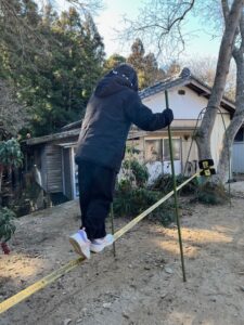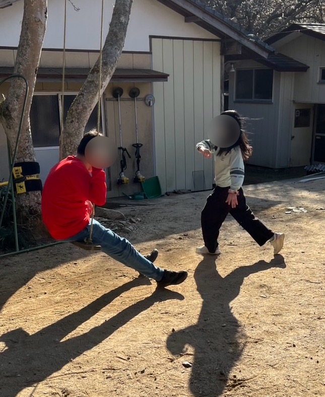 小学生のHくんとSちゃんです。Hくんは、えーぽいんとができたころからのメンバー、Sちゃんは、昨年12月から通っています。二人ともえーぽいんとにはよく来ているのですが、意外にも一緒になったのは今日が初めてでした。学年は違いますが、午前中の活動で気が合ったようです。ブランコにスラッグライン、春友サーキットで人✖自転車の追いかけっこをしたりなど、午後は超アクティブに過ごしました。
