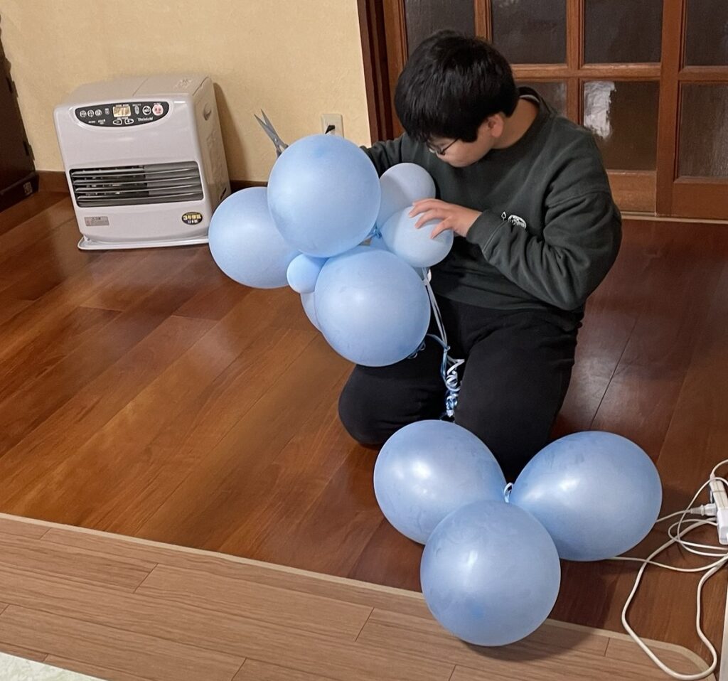 ということで、今日は祭りのあとからのスタートです。ブースの飾りつけに使ったものを片付けました。理事長のファンの方からいただいたバルーンタワーは、終演後、分解してお客さん様にプレゼントしました。持ち帰ったバルーンを割って、おもりになっていた水を抜きました。