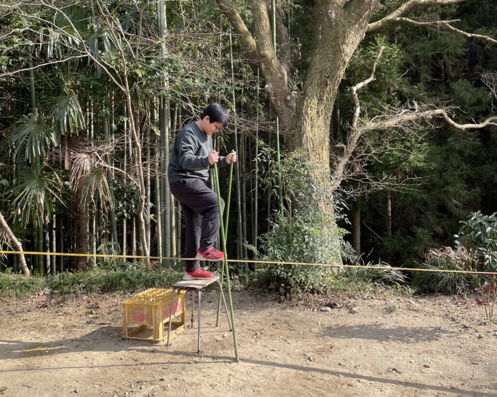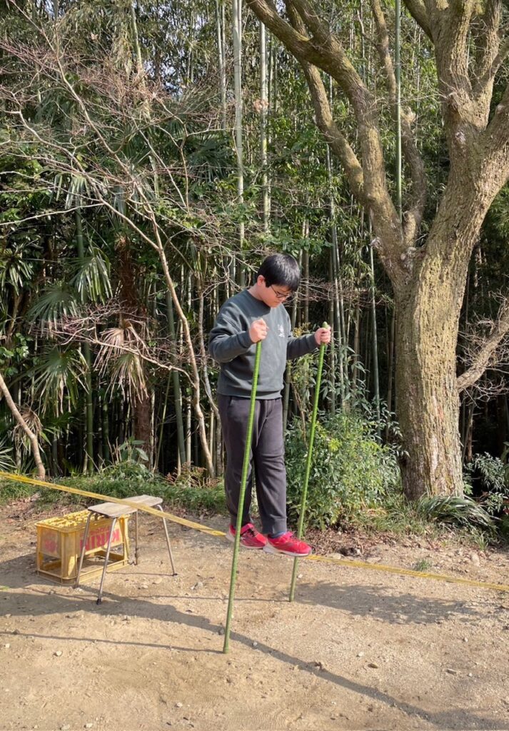 こちらは、初めてスラックラインに挑戦するIAくん。身体能力の高めのIAくん、1回目で半分まで難なく進めちゃいました。さすがです!