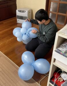 ということで、今日は祭りのあとからのスタートです。ブースの飾りつけに使ったものを片付けました。理事長のファンの方からいただいたバルーンタワーは、終演後、分解してお客さん様にプレゼントしました。持ち帰ったバルーンを割って、おもりになっていた水を抜きました。