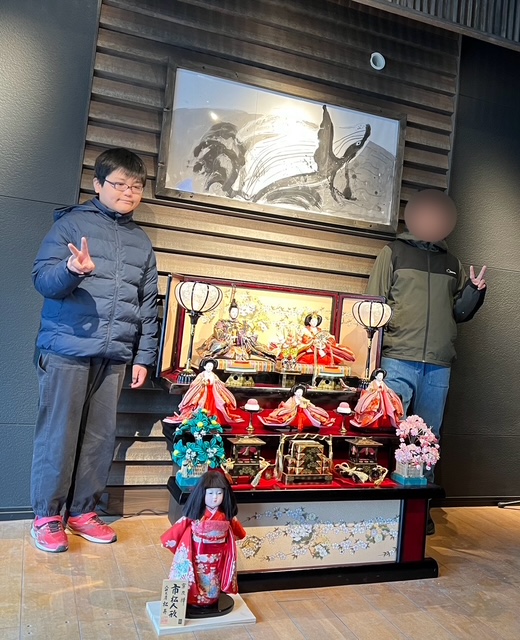 完成はこちら。今日は男の子だけのえーぽいんたーでしたが、頑張ってこんなにきれいに飾ることができました。気の合うふたり、男の子同志だけでどお雛さまとお内裏さまみたいだね。