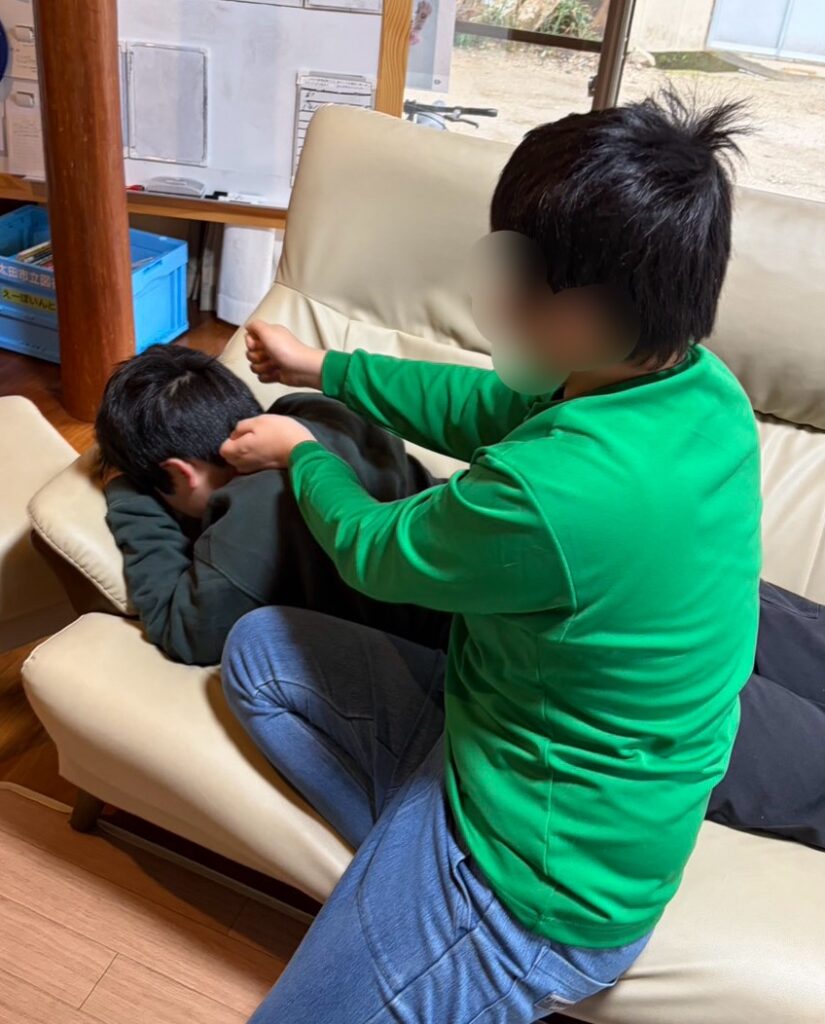 ゲームにトランプと笑いが絶えません(あれ?IAくんは休憩中?笑)。笑い疲れを癒そうと始めたマッサージでまたまた大笑いでした。