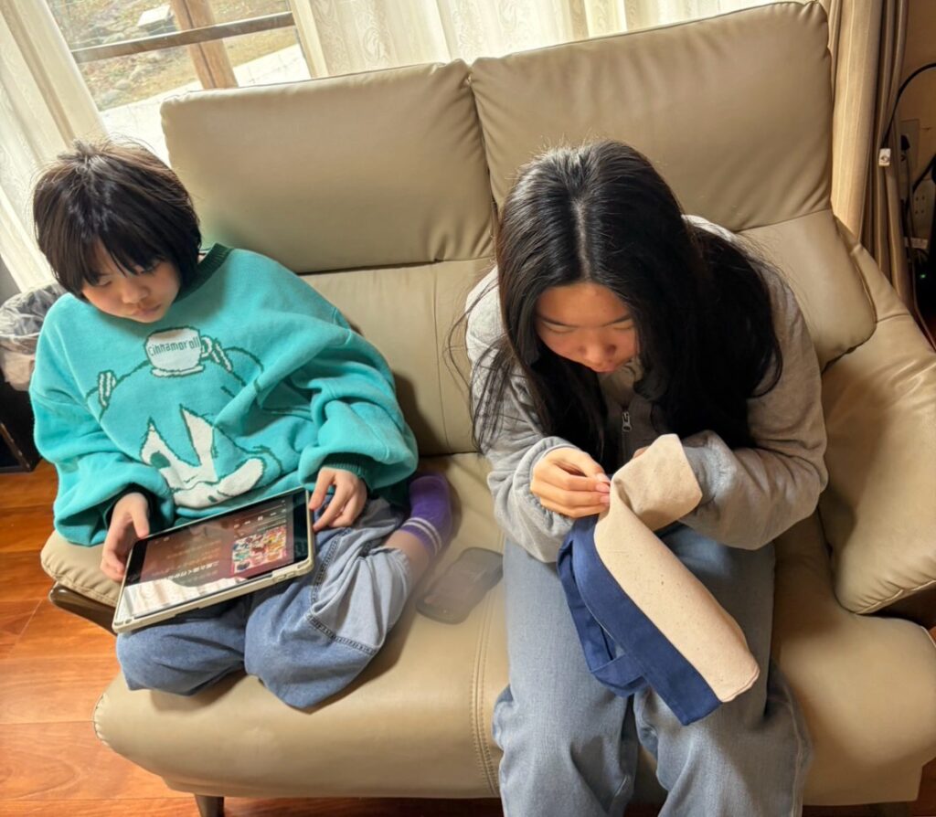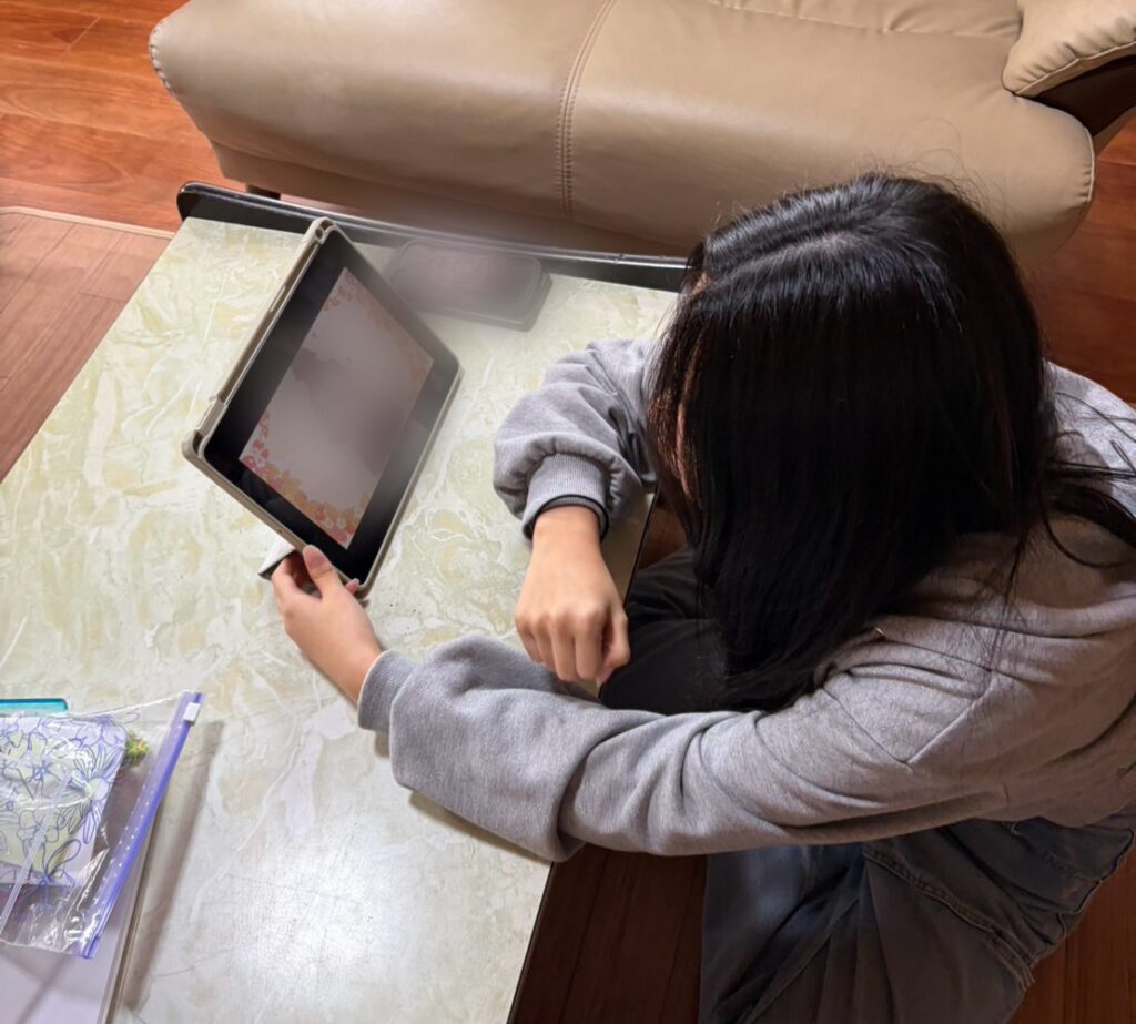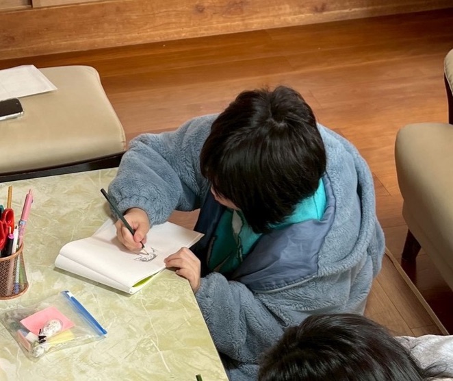 Hちゃんは、次のライブに向けて人気グッズのトートバッグづくりと新グッズのデザインを考えました。Kちゃんも一緒に大好きなお絵描きです。BGMはKちゃんの推しの歌♫。昭和歌謡が中心のスタッフ(笑)も、えーぽいんたーの影響でトレンドに詳しくなりそうですが、なぜかなかなかなれません(笑笑)。