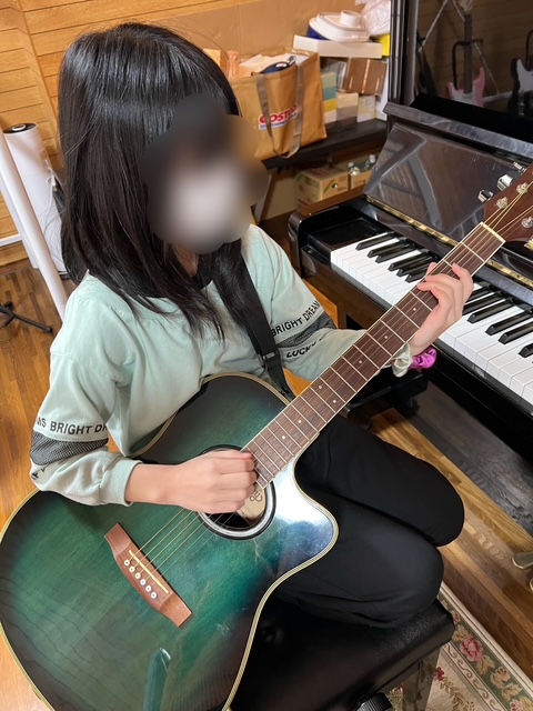 アイロンビーズを午後まで作ったSちゃん。残りの時間はミュージックタイム。今日は音楽室もひとり占め!。中学生のお姉さんたちから影響を受けたのか、ギターを練習中です。ギターそのものがちょっと大きいけれどがんばってます。そもそも音楽大好きSちゃん、今日はスタッフの伴奏で歌も披露してくれました♫。曲は『Believe』。素敵な声を聴かせてくれました。この曲はこの前、Hちゃんがピアノ練習をしていました。2人のコラボも楽しみです。