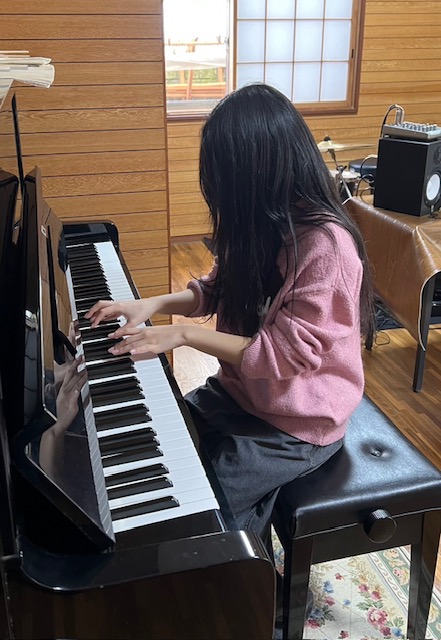 ところで、今日の午後、Hちゃんはずっと音楽室にこもってピアノを練習していました。最近、ピアノに心をつかまれているHちゃん、お気に入りの数曲を自主練中。まだまだたどたどしい指使いですがとにかく楽しそう。そしてSちゃん、こちらはギターを練習中です。
