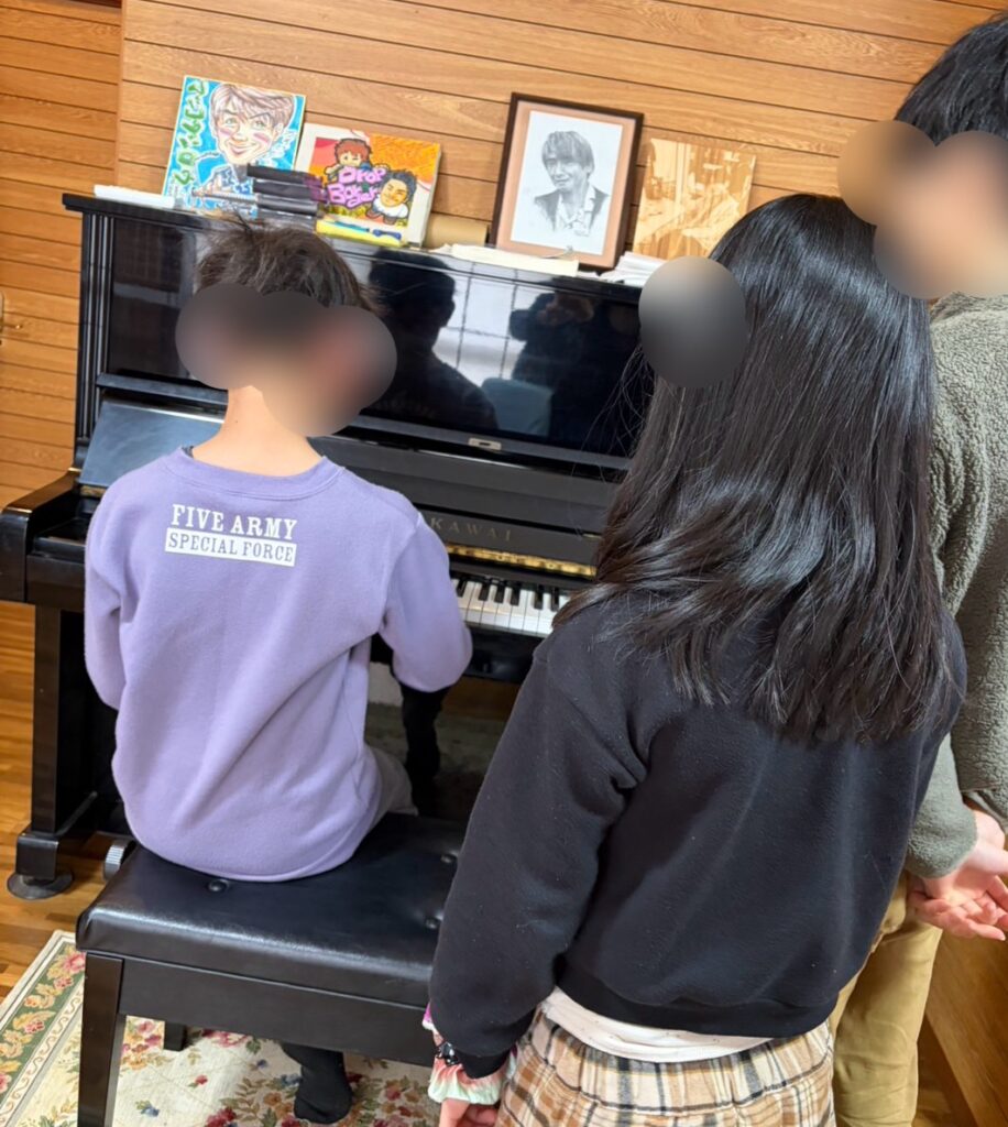 手芸と同じく音楽好きもたくさんのえーぽいんと。自慢の音楽室では、男子2人がピアノでコラボ。ゲーム音楽を弾いてくれました。それが高じて、ドラムで太鼓の達人もどきに。賑やかでした。